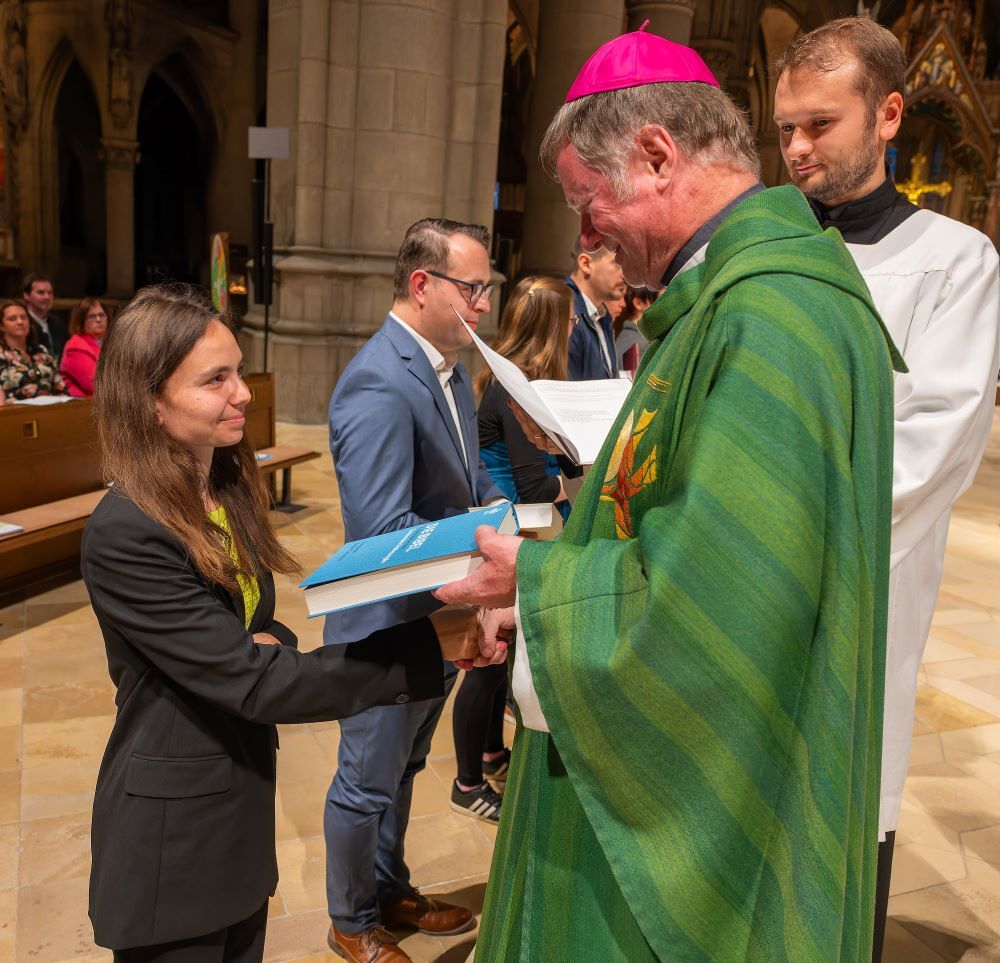 Nach der Erklärung ihrer Bereitschaft wurden die Kandidat:innen von Bischof Scheuer einzeln gesendet. Dabei erhielt jede:r Seelsorger:in von ihm eine Ausgabe der Heiligen Schrift und von der Fachbereichsleiterin Lehner das Sendungsdekret.